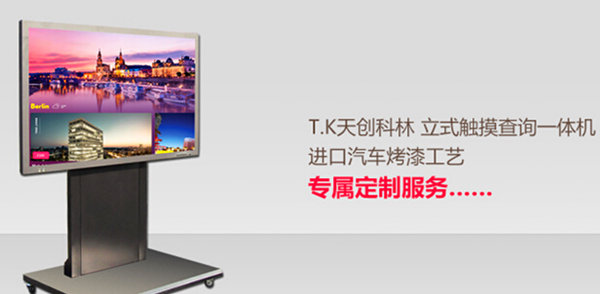 天创科林作为触控行业军企业,发展多年来始终致力于触控产品的研发与推广工作,专业提供触摸屏查询体机、数字标牌广告机、自助终端体机、电子白板、触摸茶几、桌面触摸体机等触控产品,并提供触摸屏行业应用软件个性定制服务。为感谢新老用户多年来对于天创科林的支持与厚爱,在触控体机旗舰店上线之际,天创科林将加大产品优惠力度,限度地回馈广大消费者,欢迎您登陆了解!