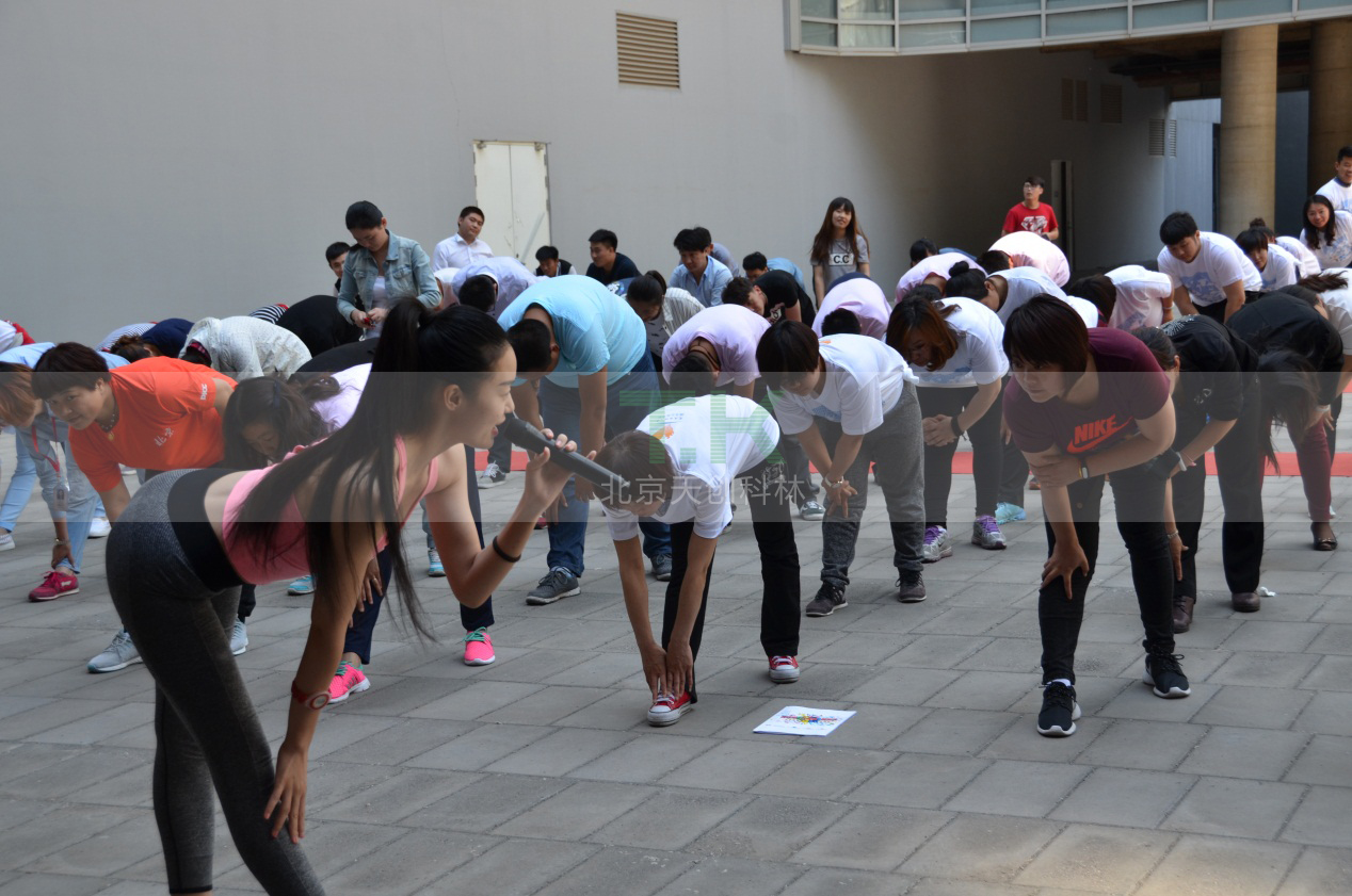 运动会开始前,由教练带大家进行了赛前放松,同时也是缓解各位久坐办公室的疲劳,每个人都积配合这位美女教练,享受这个过程。